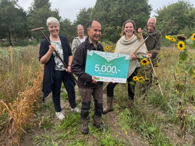 Heb jij ook een goed idee voor een groenere buurt met meer biodiversiteit? Doe dan mee aan Natuur in Eigen hand 2026 en wie weet sta jij straks ook met zo’n mooie cheque in je handen! |